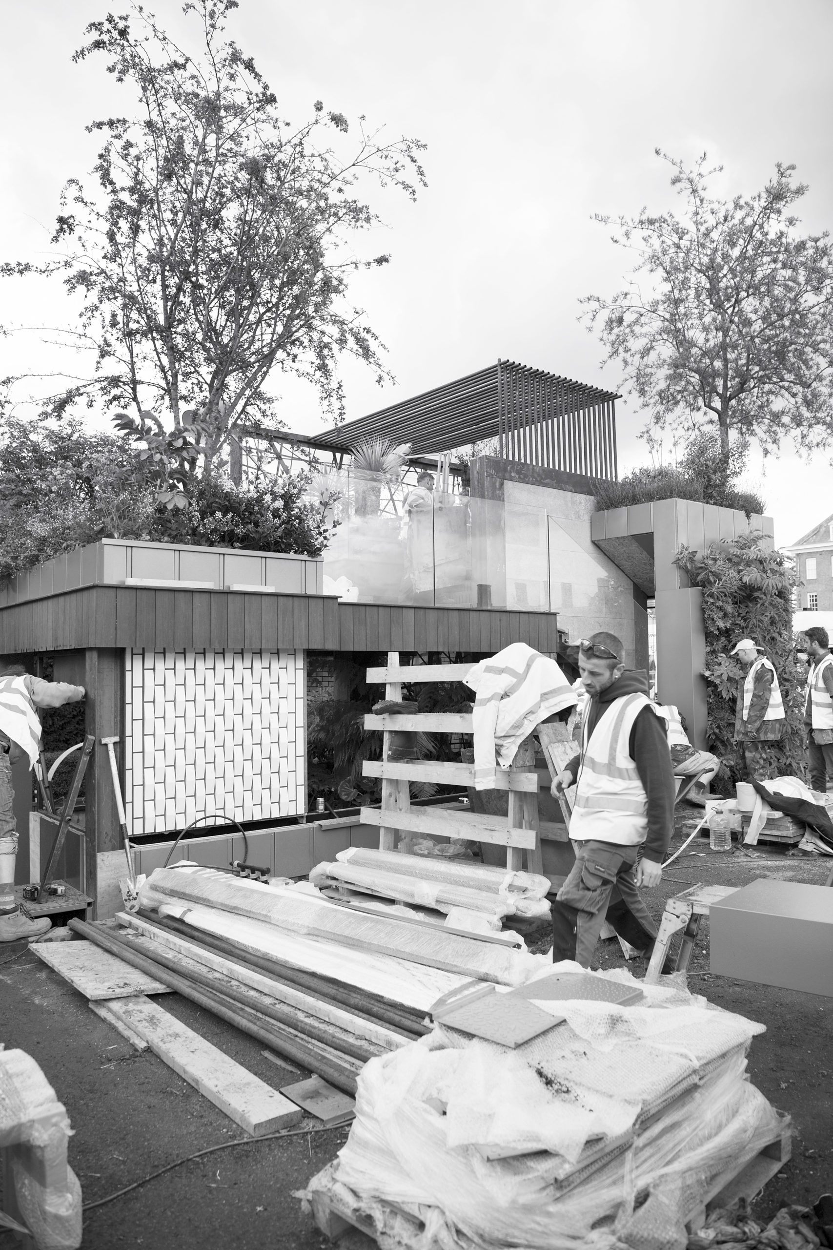 The days were long. I don’t even think we went to the pub once and there was a moment when morale dropped beyond low but the literal flick of a switch changed that instantly. The cottage industry in the weeks before build up had been creating a light transmitting terrazzo. We didn’t know if it would work but it did and just seeing it twinkling away gave us all the boost we needed to get the garden finished. It was close though. Very close. We called in the help of the big guns Gabbi, Andrew, Jeremy, Tish and of course Colin came to tweak, polish and preen and the enigmatic Michael Speller lent us a beautiful piece that was wrapped so thoroughly I apparently conducted a four letter tirade at it for several minutes just before judging. Although I have absolutely no memory of this at all.